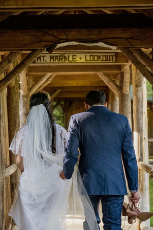 For their elopement, Kelly and Jason got ready together at their lakeside cabin before exploring the property a bit. After a brief ceremony, the three of us headed off to begin our hike. Kelly and Jason had picked a short but strenuous hike, climbing 800 feet over the course of a mile through a pine forest to a gorgeous summit.