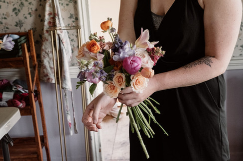 In 2019, we caught the gardening bug after buying a dahlia tuber at a local grocery store. One morning, I woke up and called Taylor. I had had the weirdest dream that we started a flower farm… We started to research flower farming and floristry, and realized that it would be a good fit. We found a mentor (who is still the most talented grower we know) and gained experience in both growing and floral design.
